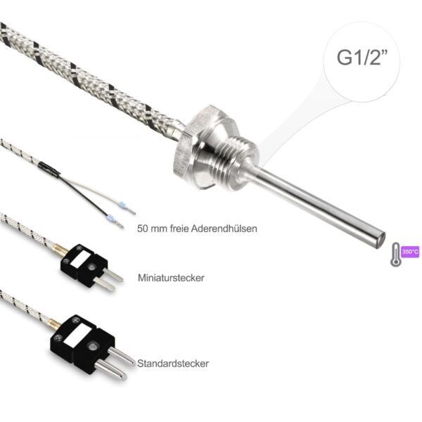 Senzor temperature za zavrtanje sa G1/2″ navojem, NiCr-Ni tip K