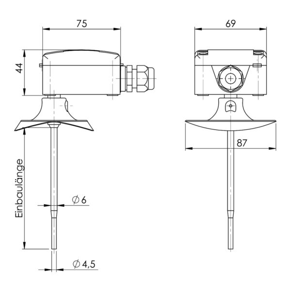 Senzor temperature u kanalu sa montažnim flanšom – brzo reagovanje (0‑10V/4‑20mA)