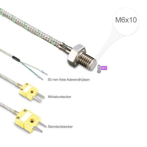 Ugradni temperaturni senzor sa navojem M6x10, NiCr-Ni tip K