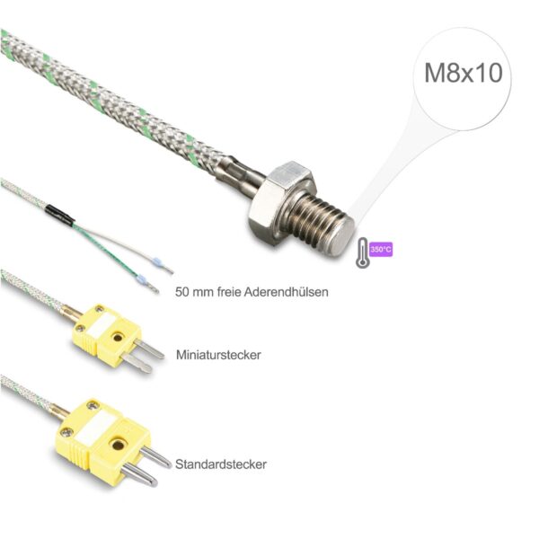 Zavrtni temperaturni senzor sa navojem M8x10, NiCr-Ni tip K