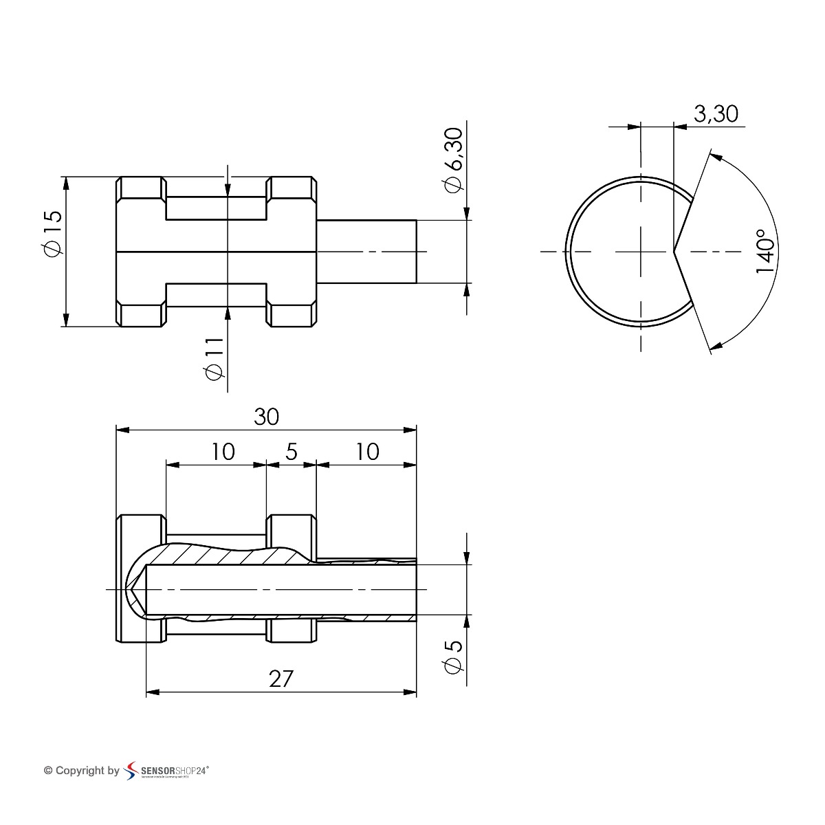 Zaštitna čaura Aluminijumska prizma Ø15mm L=30mm
