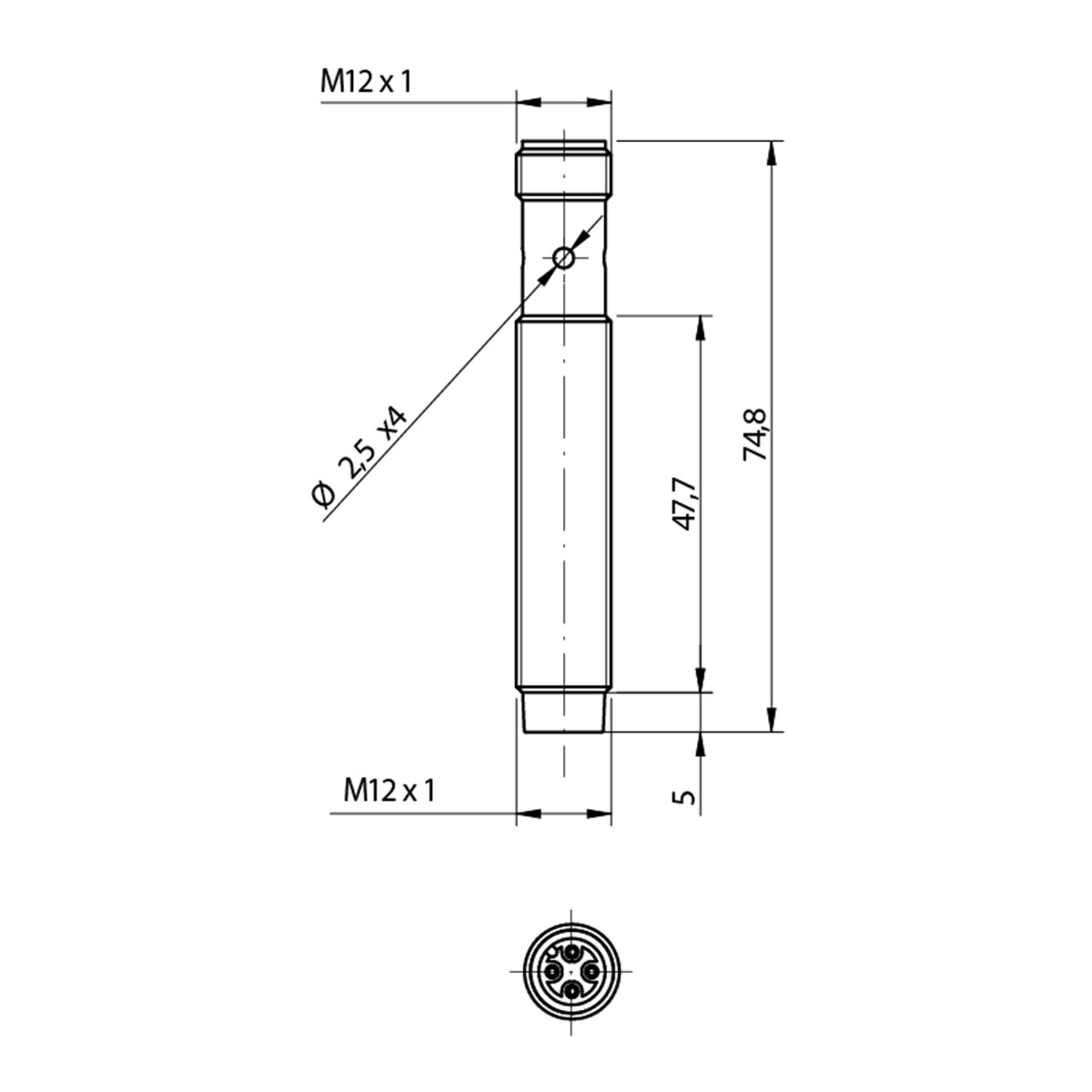 Induktivni M12 senzor blizine sa M12 konektorom – neoklopljen – rastojanje prebacivanja 4 mm