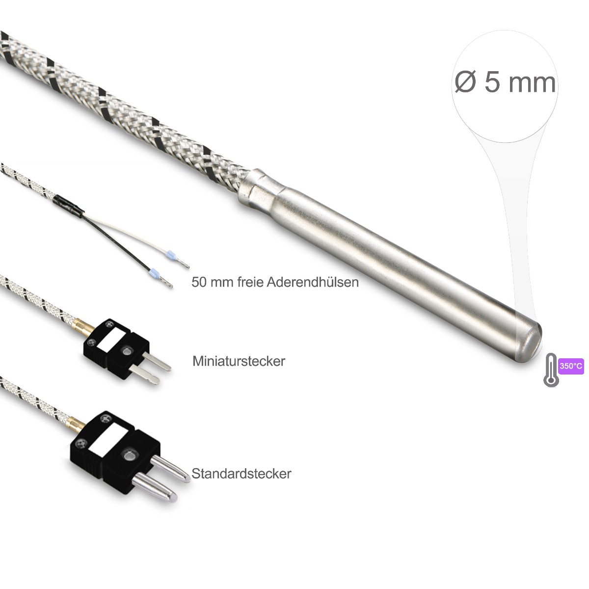 Naš kablovski termopar sa FeCu-Ni tipa J impresionira svojom raznovrsnom primenom. Koriste se za beleženje temperatura u gasovitim i tečnim medijima, npr. ugradnjom u zaštitni poklopac. Naši senzori za kablove koriste zaštitnu navlaku od nerđajućeg čelika, koja idealno štiti stvarni senzor temperature od uticaja okoline i mehaničkog naprezanja, nudeći na taj način optimalna svojstva za širok spektar lokacija.