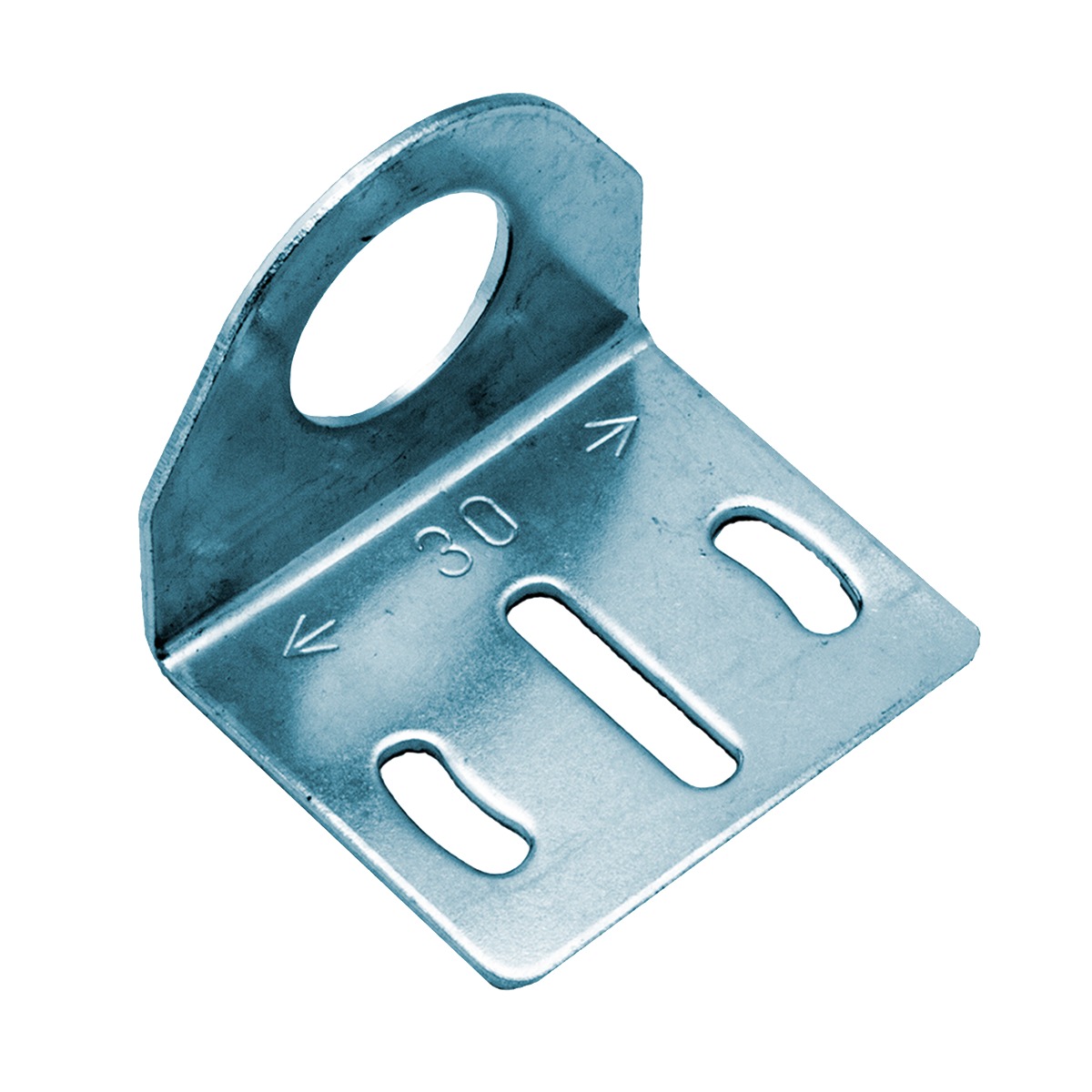 Ovaj metalni ugaoni nosač se koristi za montažu pod pravim uglom za cilindrične M18 senzore. Pričvršćuje se pomoću M3 vijaka, koji nisu uključeni u obim isporuke.