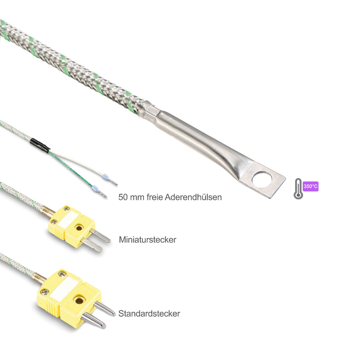 Naš površinski senzor sa integrisanim otvorom sa NiCr-Ni Tip K omogućava merenje temperature na ravnim površinama. Zahvaljujući integrisanoj rupi, naši površinski senzori se mogu pričvrstiti i fiksirati na cevi ili čvrste površine pomoću šrafa ili lepljenjem.