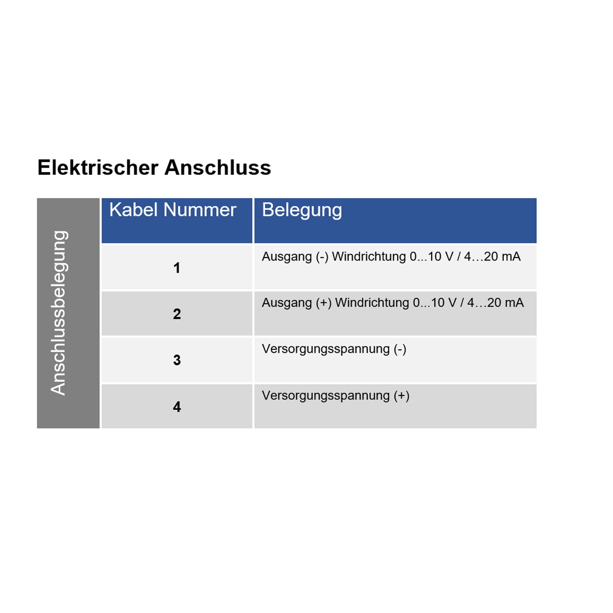 Naš senzor smera vetra se koristi za snimanje smera vetra; elektronika za procenu je integrisana u senzor vetra. Naši senzori smera vetra se koriste u građevinskoj tehnologiji i automatizaciji zgrada. Koriste se za upotrebu aktuatora u zavisnosti od smera vetra. Zahvaljujući standardizovanom izlaznom signalu od 0-10V ili 4-20mA, oni se lako mogu priključiti na postojeće kontrole i propise.