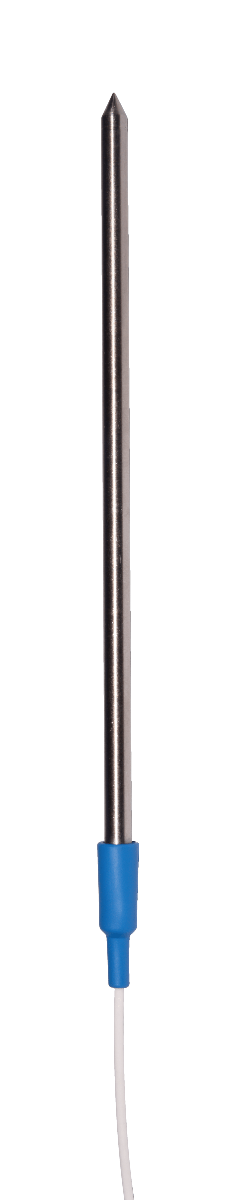 Temperaturni senzor sa kratkim vrhom od nerđajućeg čelika dužine 105 mm, bez ručke, ali sa profilisanim rasterećenjem zatezanja, koji takođe štiti od prodiranja vlage.