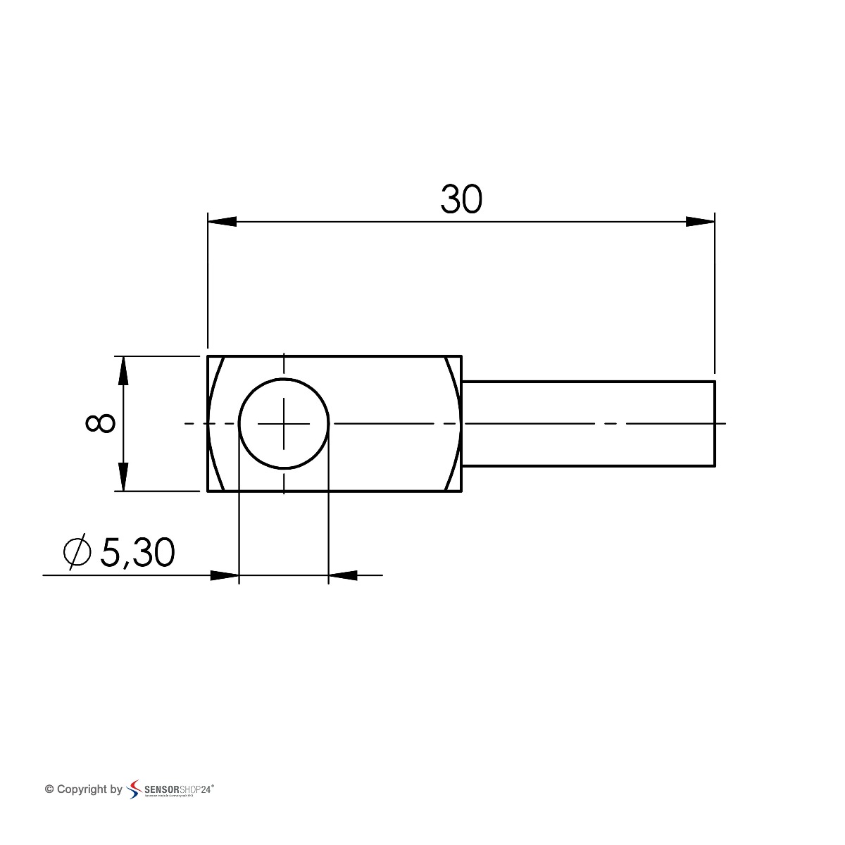 Zaštitna čaura Kvadratni kontaktni blok 8 x 8 x 15 mm, izbušena rupa Ø5.3mm VA