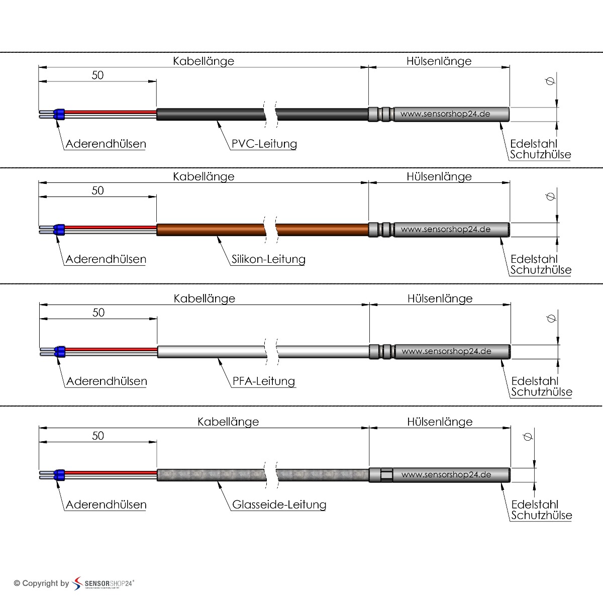 Ugaoni senzor | Silicone; 4k60mm; PT100; 3.9m; 4-vire | Poseban članak