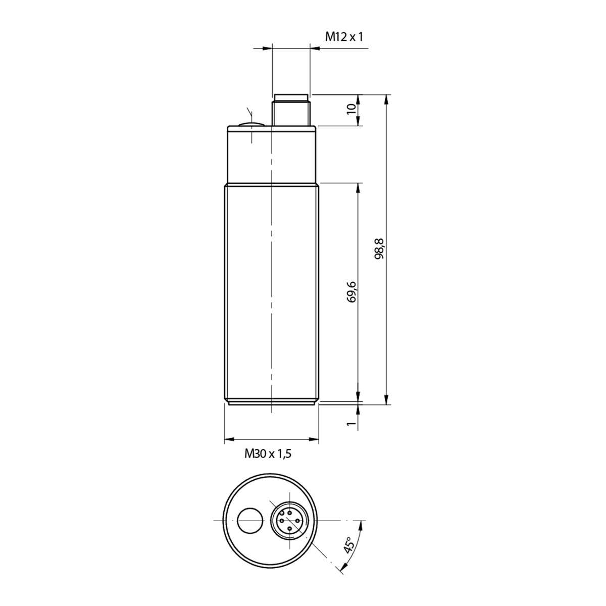 Ultrazvučni senzor M30 sa utičnicom M12 i regulacijom preko dugmeta za učenje – 0-10V – razdaljina prebacivanja 3500mm