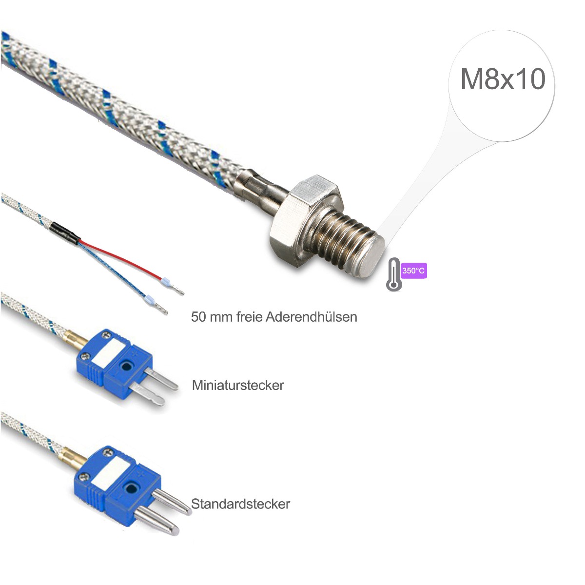 Ušrafljujući temperaturni senzor sa M8x10 navojem, FeCu-Ni tip L