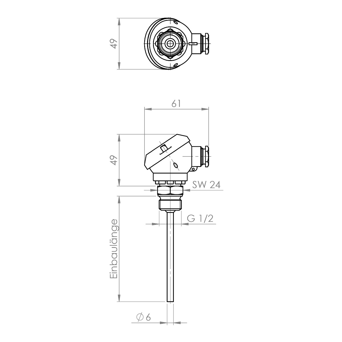 Uvrtni senzor G1/2″ MA glava do 400°C uklj. termopar tip K, J